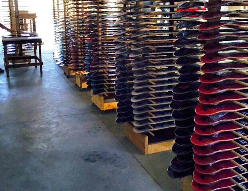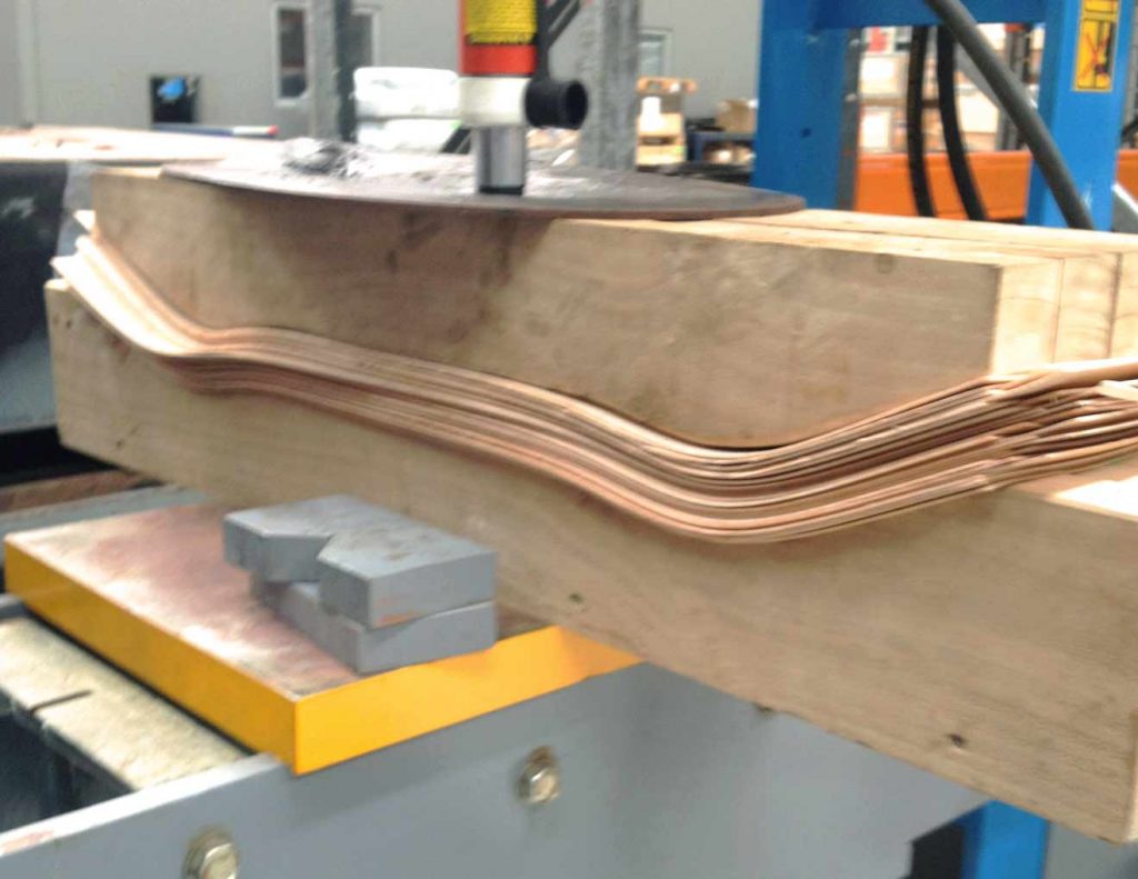 Fabricação do Shape de Skate – Diversas camadas de madeira sendo coladas