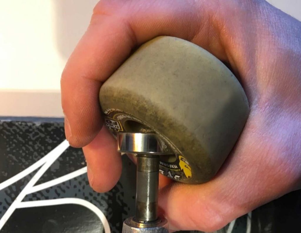 Na montagem, deve-se colocar dois rolamentos para cada roda, assim como os espaçadores. Com isso em mãos, o primeiro rolamento deve ser colocado no truck e, logo em seguida, a rodinha. É recomendado que se faça uma pressão na rodinha para que ela fique bem firme ao rolamento.