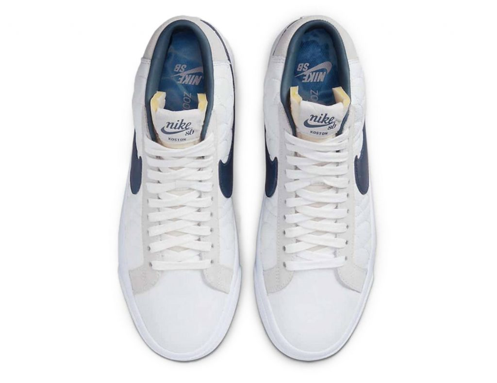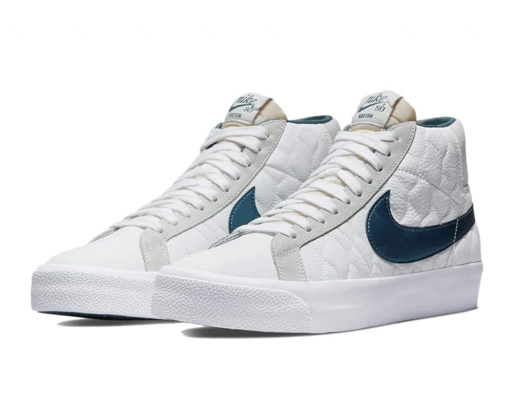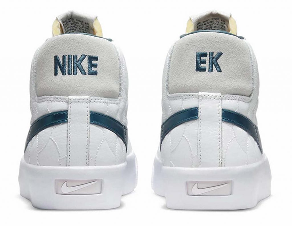 O Skatista da equipe Epic da Nike SB, Eric Koston, lançará em breve sua própria colaboração Blazer Mid para o verão de 2022. Portanto, a oferta Nike SB Blazer Mid apresenta uma base de couro branco com detalhes de escama de peixe costurados, sobreposições de camurça e Swooshe com apareencia metálico de cetim. Outros detalhes incluem forro de couro lux. Línguas acolchoadas com assinatura conjunta e as iniciais da Nike e do Eric gravadas nos saltos de camurça. Palmilhas com estampa de água no topo da sola de borracha Teal e uma entressola branca completam o design. Portanto, confira as imagens oficiais abaixo e procure o Eric Koston x Nike SB Blazer Mid nas próximas semanas em lojas selecionadas e na Prince of streets .